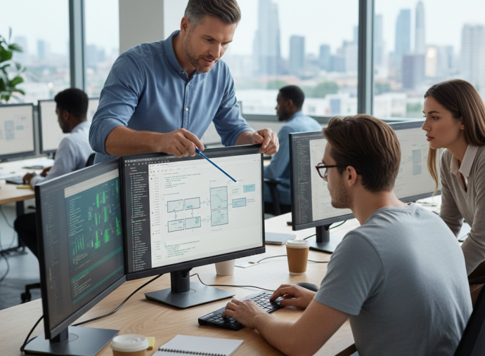 メンターとエンジニアは毎週1回の定例ミーティングを実施し、業務の振り返りや課題の整理、次週の目標設定を行います。技術的な指導だけでなく、業務の進め方やコミュニケーション面の不安についても相談できる環境を整えています。日々の小さな疑問も気軽に共有できるため、早期の課題解決と着実なスキル定着につながっています。